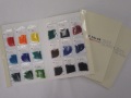■Aスキに膨張係数を合わせて作られたガラス、サングラスカラーのサンプルセットです。 主に吹きガラス用途に作られた、濃い色ガラスであるサングラスフリットシリーズのサンプルセットです。 現物見本を、各色約5gずつお試しいただけます。 内容は現行の全44色(2022年11月時点)で、粒度は全てK-1(1.0~2.4mmサイズ)のものとなります。 【全44色内訳】 No.1赤、No.2オレンジ、No.3黄色、No.4スカイブルー、No.5コバルトブルー、No.6シアンブルー No.7インディゴブルー、No.8エメラルドグリーン、No.9若草色、No.10ピーコックグリーン No.11紫、No.12金赤(鉛入り)、No.14茶、No.15ヒヤシンス、No.16マリンブルー、No.17スモーク No.18青紫、No.19蘇芳色、No.20新金赤(鉛フリー)、No.22紺色、No.24濃スカイブルー No.25濃コバルトブルー、No.31抹茶色、No.32鉄納戸、No.33利休茶、No.34紫苑色、No.35鈍色 No.36浅葱、No.37苔色、No.38藍鼠、No.39松葉色、No.50朱色、No.52オレンジギョク、No.53黄ギョク No.54スカイブルーギョク、No.55濃コバルトブルーギョク、No.56薄コバルトブルーギョク No.62金赤ギョク、No.64カフェオレギョク、No.81Aスキ、No.89黒、 No.92Sギョク(鉛入り)、No.93オパール、No.94Aギョク(鉛フリー) ●冊子タイプ 販売単位:1セット(3冊) 透明色・不透明色の全てのフリットを各色一覧できるように、 冊子に整理・貼り付けしたフリットサンプルセットです。 ●バラタイプ 販売単位:1セット(全色パック) 透明色・不透明色の全てのフリットを、チャック付の小パックに納め、 バラの状態でお届けするフリットサンプルセットです。 冊子タイプ、バラタイプのフリットサンプル内容・重量は同等です。 在庫切れの場合はお問い合わせ下さい。 手づくりのため、お時間を頂く場合がございます。予めご了承ください。