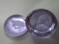 ■Aスキをベースに着色原料を加えて作られたガラスです。 ※Aスキの膨張係数α=100 キャスティングなど、ガラスをそのまま溶かして使う技法に適するように、 色の濃さを調整して作られた色ガラスです。 蛍光灯では薄紫色ですが、太陽光で赤味が強まります。 ※色味の違いについての比較画像はこちらをクリック フリットシリーズNo.15 ヒヤシンスとは全く異なる商品です。 ●ビレット 販売単位:1個 直径約60mm、高さ約30mmの半球状に成型したものです。 手づくりのため、重量は1個あたり約190~240gとバラつきがあります。 泡やクラックが少なく、キャスティングに適しています。 そのまま予熱・ピックアップして、吹きガラスの生地としてもご利用頂けます。 ●カレットS 販売単位:1kg 溶融生地を水砕(水で急冷して粉砕)したもので、平均粒径は10~15mm程度です。 キャスティングやパートドヴェールの他、坩堝溶融でもお使いいただけます。 ●ロンデル 販売単位:1枚 金型で挟み、薄く平たい皿状に成型したものです。 手づくりのため、各サイズ重量にバラつきがあります。 詳細についてはこちらをクリック ※2021年4月1日より価格改定致しました。